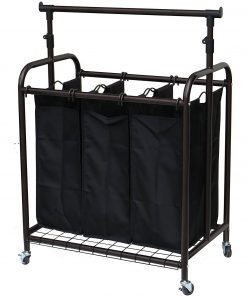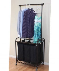 • Bronze Black 3-Bag Laundry Sorter Hamper with Adjustable Clothes Hanging Bar
