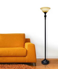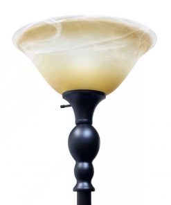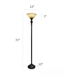 This Bronze Finish Metal Floor Lamp Torchiere with Amber Marbleized Glass Shade has a Restoration Bronze Finish and Marbelized Amber Glass Shade.It Uses 1 x 100W equivalent 3 way Type A Medium Base Bulb (not included) and is Dimensions; L: 13″ x W: 13″ x H: 71. Some Assembly is Required.