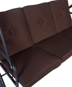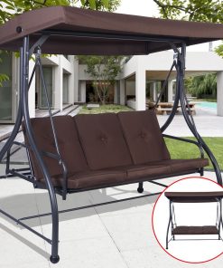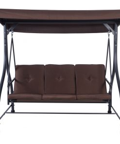 This Brown Adjustable 3 Seat Cushioned Porch Patio Canopy Swing Chair seats up to three people comfortably. This item is low-maintenance, easy to assemble, and the fabric is weather and stain-resistant. This canopy is the perfect summer accessory to escape the heat and relax. Our swing will look great in a backyard or front porch. It will definitely bring you much needed relaxation on those hot summer days.