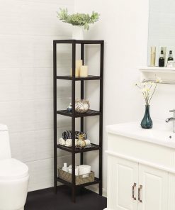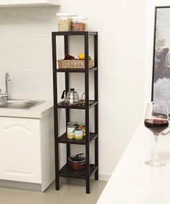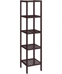 The Brown Bamboo Wood 4-Shelf Versatile Storage Unit Rack Narrow Bookcase features sturdy bamboo and refined craft, creating additional space for your home. Considerable design makes it a better choice to your bathroom, living room, kitchen, balcony or any other space to display and store items in style. It can be used as a storage rack for toiletries, towels, sundries, decorative things, knick knacks, shoes, books, plants, spice and small appliances. You can remove a layer to meet your special storage need. Easy to care and clean. The nice bamboo will well match with your furniture in your home.