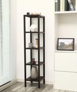 - Brown Bamboo Wood 4-Shelf Versatile Storage Unit Rack Narrow Bookcase