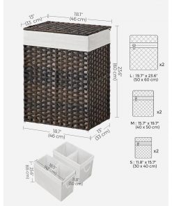 The lid keeps odors in the laundry basket and dust out. If needed, you can open it up with a single hand; the 2 sections sort your clothes into darks and whites prior to laundry day. This Brown PP Rattan 24-Gal Laundry Hamper Basket w/ 2-Compartment Washable Liner Bag comes with an extra liner so you can switch it out while one is taken to the laundry room or washer with the 2 handles. And both bags are washable to stay hygienic. Crafted with a sturdy steel frame and select synthetic rattan, this laundry hamper with lid is stable, waterproof, breathable, and can stay dry in humid environments. Sized at 13L x 18.1W x 23.6H, this laundry basket with lid boasts a large capacity of 23.8 gallons, able to hold a family’s laundry for a whole week. This hamper comes with 6 laundry bags to help you protect your underwear, socks, or other delicates when you wash them in the washing machine.