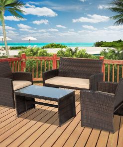 - Brown Resin Wicker 4-Piece Modern Patio Furniture Set with Beige Padded Cushions