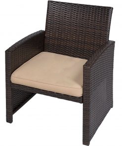 - Sturdy steel frame and high-quality wicker that can support up to 300 pounds per seat will make this set a mainstay in your patio for years