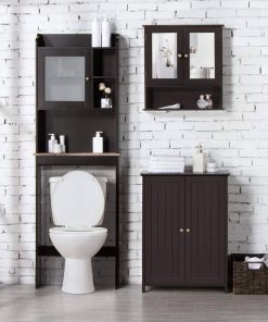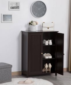 - Brown Wood 2-Door Freestanding Bathroom Floor Cabinet Kitchen Storage Cupboard