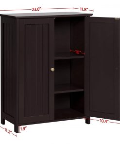This Brown Wood 2-Door Freestanding Bathroom Floor Cabinet Kitchen Storage Cupboard would be a great addition to your home. This compact cabinet measures 60x30x80.5cm/23.6x12x31.7(LxWxH) yet gives spacious top open and behind door storage options. There are 2 shelves adjustable at three different heights so that you can explore the best use of the door-enclosed space while sorting out various items.