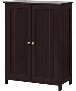 - Brown Wood 2-Door Freestanding Bathroom Floor Cabinet Kitchen Storage Cupboard