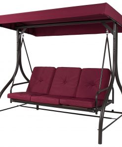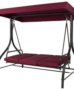 This Burgundy Outdoor Patio Deck Porch Canopy Swing with Cushions seats up to three people comfortably. This item is low-maintenance, easy to assemble, and the fabric is weather and stain-resistant. This canopy is the perfect summer accessory to escape the heat and relax. Our swing will look great in a backyard or front porch. It will definitely bring you much needed relaxation on those hot summer days. We purchase our products directly from the manufacturer, so you know you’re getting the best prices available.
