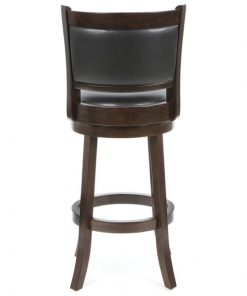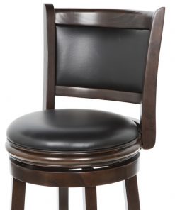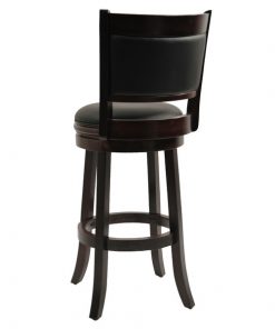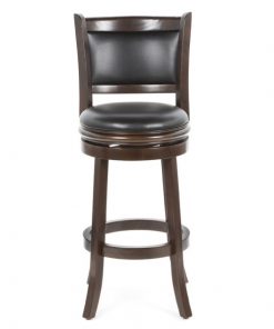 Accent your bar space with this classy and stylish 29-inch swivel bar stool. Its attractive and durable design is a perfect fit for all decor settings. It occupies less space and proves highly useful when you have guests at home.This stool has a solid hardwood construction that ensures it lasts for many years to come. The lustrous finish lends it a timeless look and adds to the appeal. It is fitted with a rich faux leather seat with high density foam to offer comfortable seating and enhance its appearance. It has flawlessly crafted French style legs with tempered bottoms. The steel ball bearings keeps it steady. The swivel ensures unrestricted movement. While the full ring footrest lends more strength and stability. The back support makes the seating experience more relaxed.The 29-inch bar stool has a weight capacity of 250lbs. Its seat height is 29”. The overall dimensions of the bar stool are 43.5-inch in height, 17-inch in width and 18-inch in depth. This stool is best paired with an elegant bar table to complete the sophisticated look of your decor.
