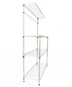 This Carbon Steel Kitchen Bakers Rack with MDF Wood Shelf and Hanging Bar with Hooks can easily turn any kitchen into the ideal storage and workspace. The three spacious lower shelves measure (35.75 inches x 13.5 inches) and carry a capacity of 88 pounds per shelf, with a top shelf that carries up to 6 lbs for your lighter food items. If you have taller items you can easily rearrange and adjust the shelf height in order to fit your larger items. Also includes rack hooks to hang a variety of things for quick, easy access.