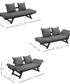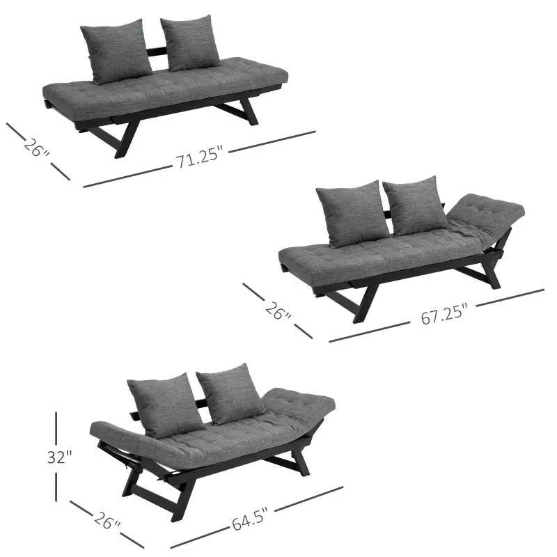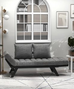 This Charcoal/Black 3 In 1 Convertible Sofa Chaise Lounger Bed w/ 2 Large Pillows looks great with any decor! Both armrests can be independently adjusted up or down to create a loveseat sofa, a couch bed at 71.25″ flat, or a chaise lounger, depending on your seating or sleeping needs. Quickly converts from loveseat into a sofa sleeper and back again, which is perfect for a quick relaxing nap or unexpected guests who need a place to sleep. A high-quality thick oak frame creates a sturdy, relaxing base that can support up to 462 lbs of weight, while the linen fabric cover over medium density foam, adds a luxurious, comfortable touch to this convertible sofa bed. The linen fabric pillow cover zips open and is removable for easy cleaning and maintenance of both the cover and the foam pillow on this small sofa.
