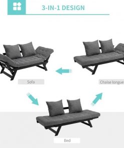 Charcoal/Black 3 In 1 Convertible Sofa Chaise Lounger Bed with 2 Large Pillows