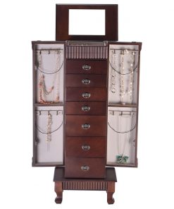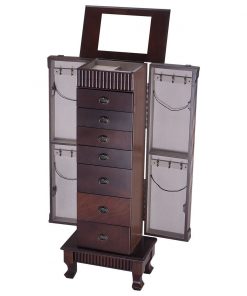 - 7 open drawers and two side doors provide ample jewelry storage space