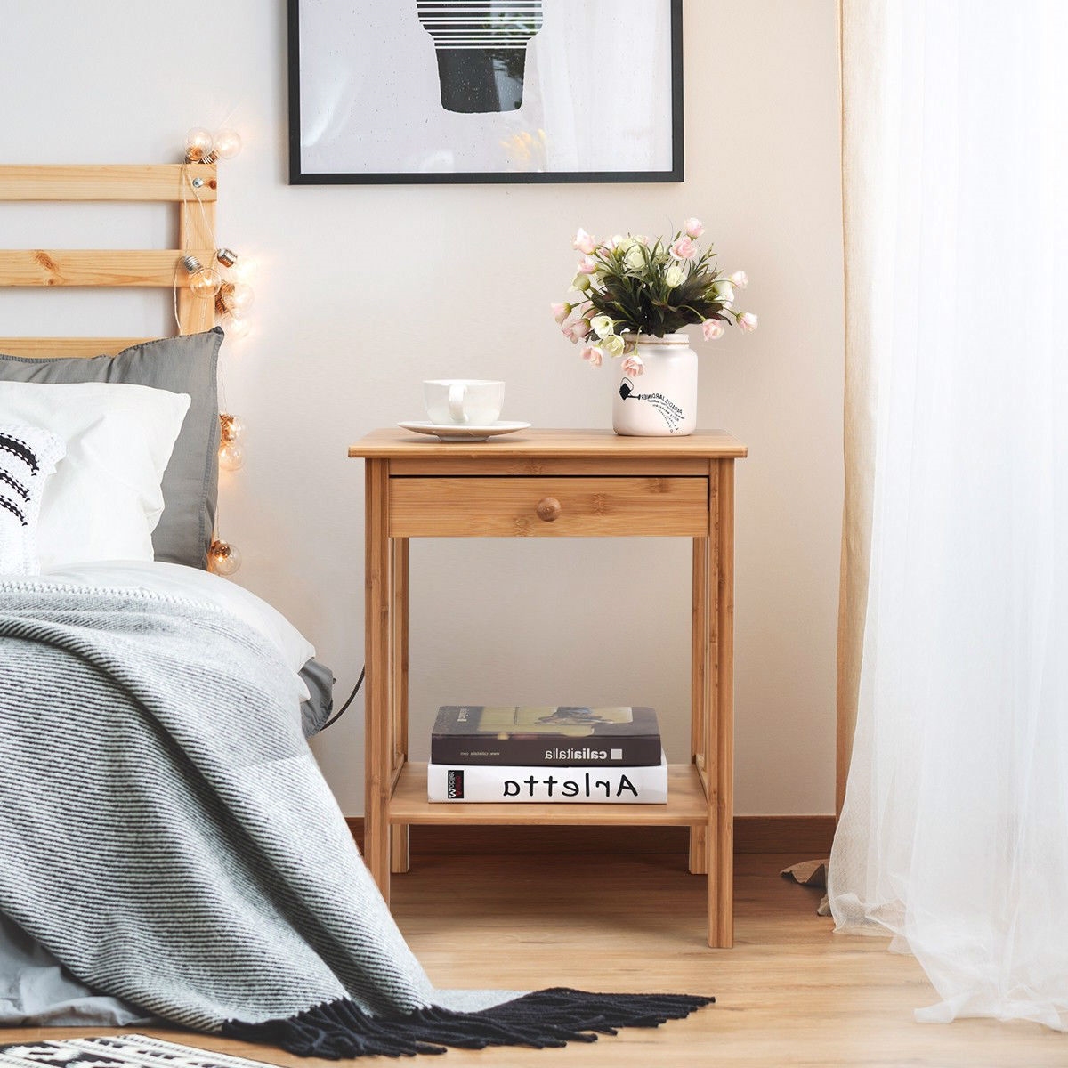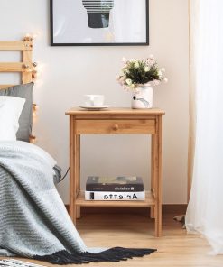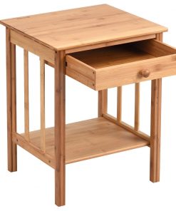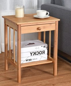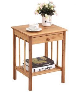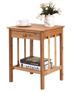 This Classic Light Brown Wood 1-Drawer End Table Nightstand Side Table is the simple but practical end table which features a drawer and open shelf making it convenient to display and store your things. On the top, you can place your table lamp to read or your photo frames to decorate. On the additional lower shelf, you can place books, magazines, etc. It saves space and helps keep your room neat. Made of bamboo, the entire structure remains very solid and durable. And even more, it has 4 durable feet. Which ensures stability. This side table is made of high quality bamboo which combine of clean lines design and classic dark finish. Blend with classic and contemporary style, this side table not only conformity with your room style, but decor your room. It is ideal choice for your room. Don’t hesitate to buy it.