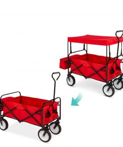 Collapsible Utility Wagon Cart Indoor/Outdoor with Canopy – Red