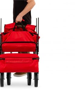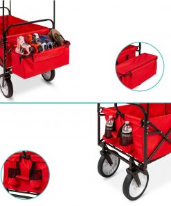 Let’s get this party started!! This Collapsible Utility Wagon Cart Indoor/Outdoor w/ Canopy – Red has a convenient folding design allows you to quickly collapse this cart and store it by your door or in your car’s trunk. Comes with a removable, weather-resistant canopy provides your cargo with shade and protection from the rain or shine. Has a 32-inch cargo area, 2 cup holders, and a detachable pocket provides you with reliable storage solutions for multiple items. Haul food, gear, and other accessories on your trips to the store, park, campsite, or the beach. Built with a powder-coated steel frame, weather-resistant polyester fabric, and four thick-treaded tires to carry weights up to 150 lbs.