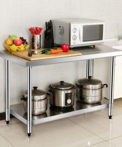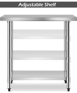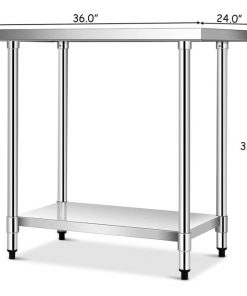 This Commercial Kitchen Stainless Steel Work Table features a stainless steel tabletop which is 36″ in width and 24″ in depth and features a superb max. Capacity of 330lbs. After wire-drawing treatment and a unique film applied to the surface, the table is rust-proof and scratch-proof. Metal tabletop makes it very easy to clean, just use a wet towel to wipe it. Four skid-proof legs are constructed from hard plastic providing a reliable and not easily breakable and long lasting experience. They can be rotated to slightly adjust the height so you can enjoy a stable and balanced working environment.
