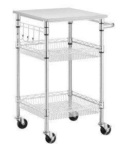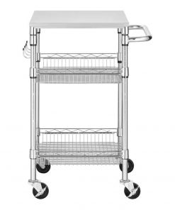 • Compact Kitchen Cart with Stainless Steel Top and 2 Bottom Storage Shelves
