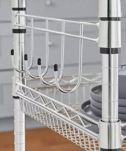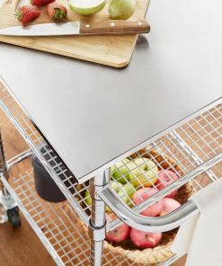 This Compact Kitchen Cart with Stainless Steel Top and 2 Bottom Storage Shelves would be a great addition to your home. It has a solid pattern, the handle is made of stainless steel and a modern style.