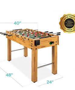 This Competition Arcade Waist Height Foosball Table is a game room classic that’s crafted with sturdy composite wood and chrome-finished steel rods for long-lasting, high-quality fun. Competition-sized foosball table brings fun to any setting, perfect for home game rooms, arcades, and other entertainment areas. Control bars have comfortable grips for better ball control (2 balls included) as it slides on the smooth, low friction surface for that game-winning goal. Molded plastic figurines feature smooth curves for better ball control and more professional gameplay. Comfortably built waist-high for easy viewing plus a set of built-in cupholders for mid-game hydration.