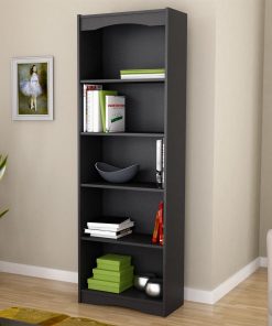 Complement your home decor with the soft arches and beautiful open shelves of this Contemporary Black Bookcase with 5 Shelves and Curved Accents. Paired up or on their own these open shelves are a simple contemporary way to organize your living space or add some personal style.