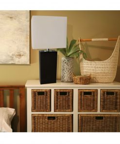 This fashionable table lamp, with its black leather body and white fabric shade, will add style and pizazz to any room. We believe that lighting is like jewelry for your home. Our products will help to enhance your room with elegance and sophistication.
