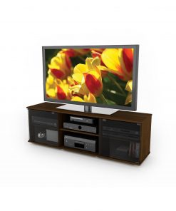 This Contemporary Brown TV Stand with Glass Doors – Fits TV’s up to 64-inch is the gorgeous television and component stand. Practical for either a mounted or sitting TV, this stand is a beautiful combination of open and concealed storage space complete with easy touch tempered glass doors. Available in our warm and appealing signature shade of Urban Maple the FB-2607 effortlessly houses all of your A/V components and is built to accommodate most TVs up to 64-inch. Bring home this contemporary furniture by Sonax, proudly built in North America.