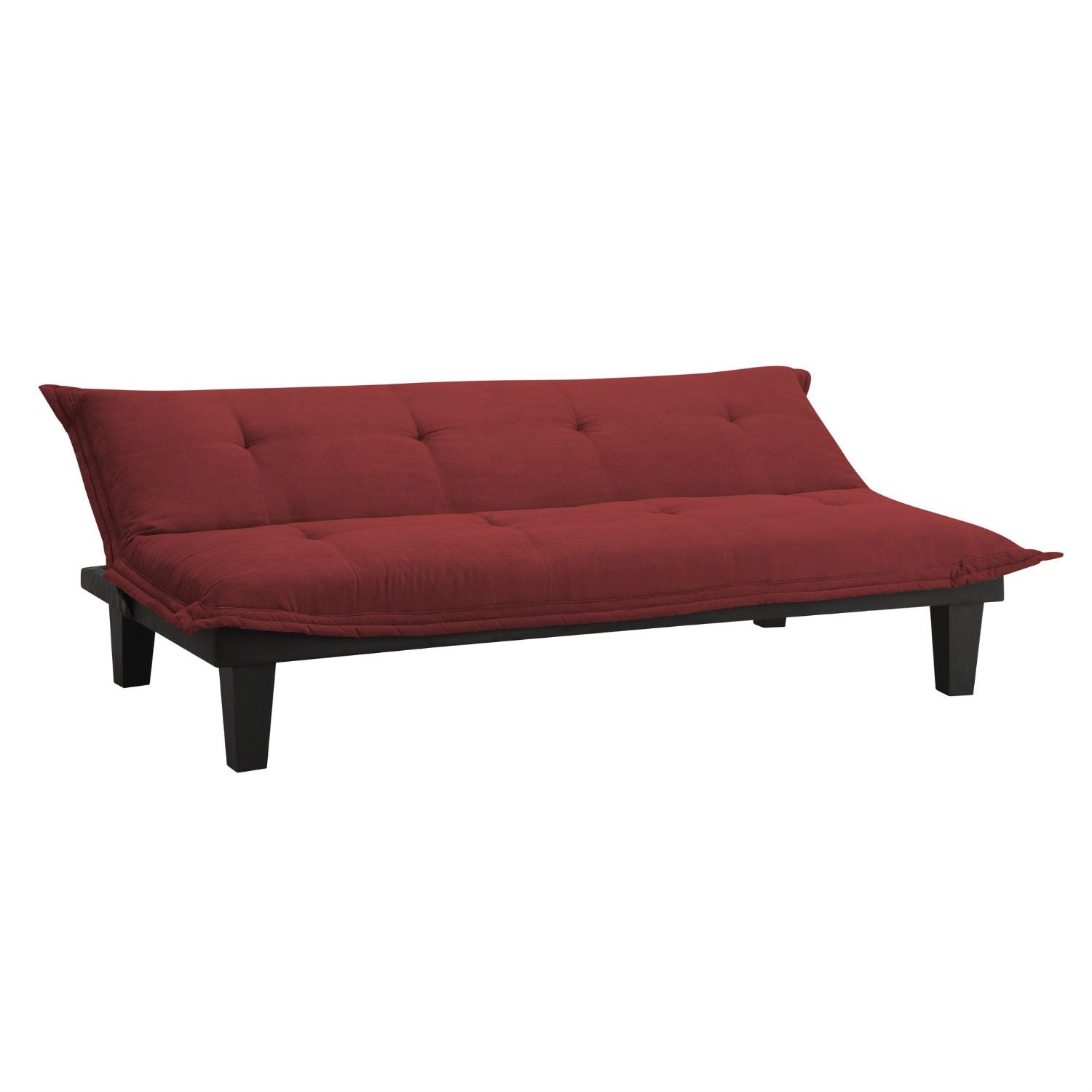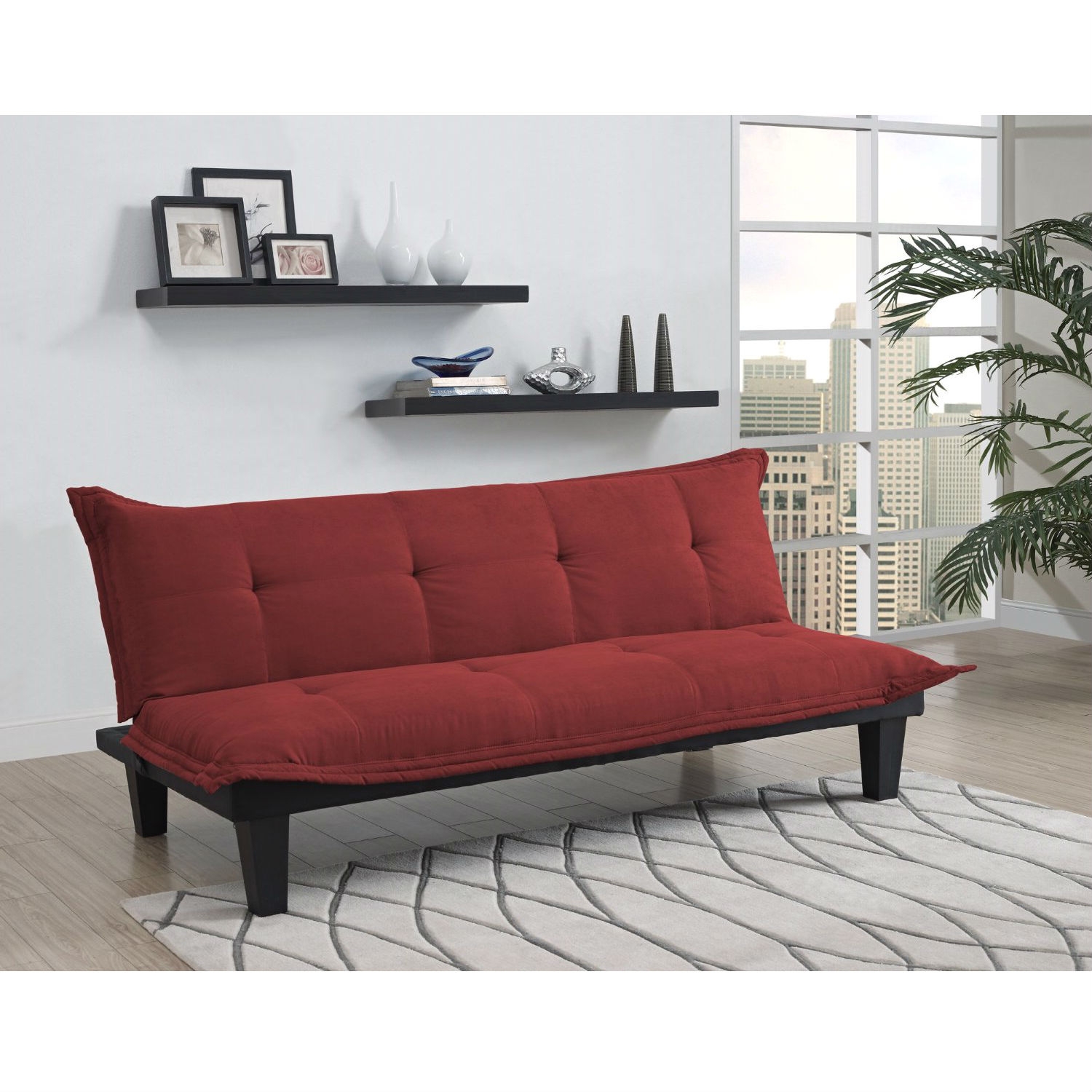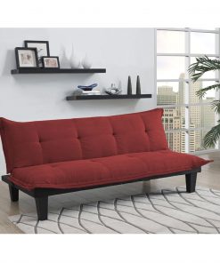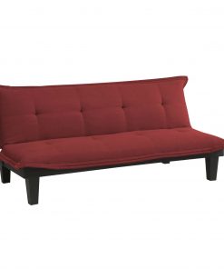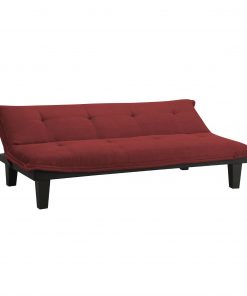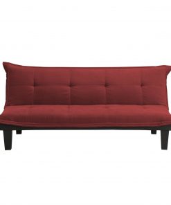 Add a personal touch to your home with this Contemporary Futon Style Sleeper Sofa Bed in Red Microfiber. Perfectly sized for small spaces, the simple yet unique design, lends a relaxed and sophisticated look. The lush, microfiber upholstery, extra-padded seats and modern tufting, make it ideal for any room décor. The multi-position back features a Click-Clack mechanism that easily converts this futon to a sleeper. Maximize your space with functionality, style and comfort with the DHP Lodge Futon!.