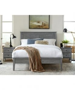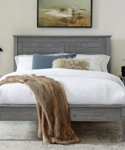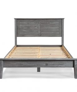The Contemporary Grey Solid Pine Platform Bed in Queen Size bed blends contemporary and traditional styles that make it feel familiar, yet bold. Its louvered headboard creates a timeless coastal style. Made of 100% solid pine wood, this bed features a sturdy construction that can last for years.