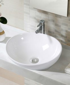 This Contemporary Oval Basin Round Vessel Bathroom Sink in White is perfect to upgrade your bathroom. With premium quality ceramic, our sink ensures lasting for longer. The popup drain design can effectively meet your need of water storage and drainage, bringing a enjoyable using experience for you. With this exquisitely built and designed, this elegant beauty will give your bathroom an absolute makeover. It will bring an aesthetically pleasing appearance to your bathroom. It is ideal for both home and commercial use. Don’t hesitate to buy it!