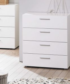 Contemporary Style White 4-Drawer Bedroom Bureau Storage Chest