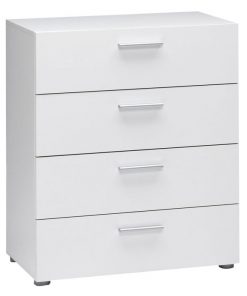 This Contemporary Style White 4-Drawer Bedroom Bureau Storage Chest would be a great addition to your home. It has a contemporary style and is made of metal hardware.