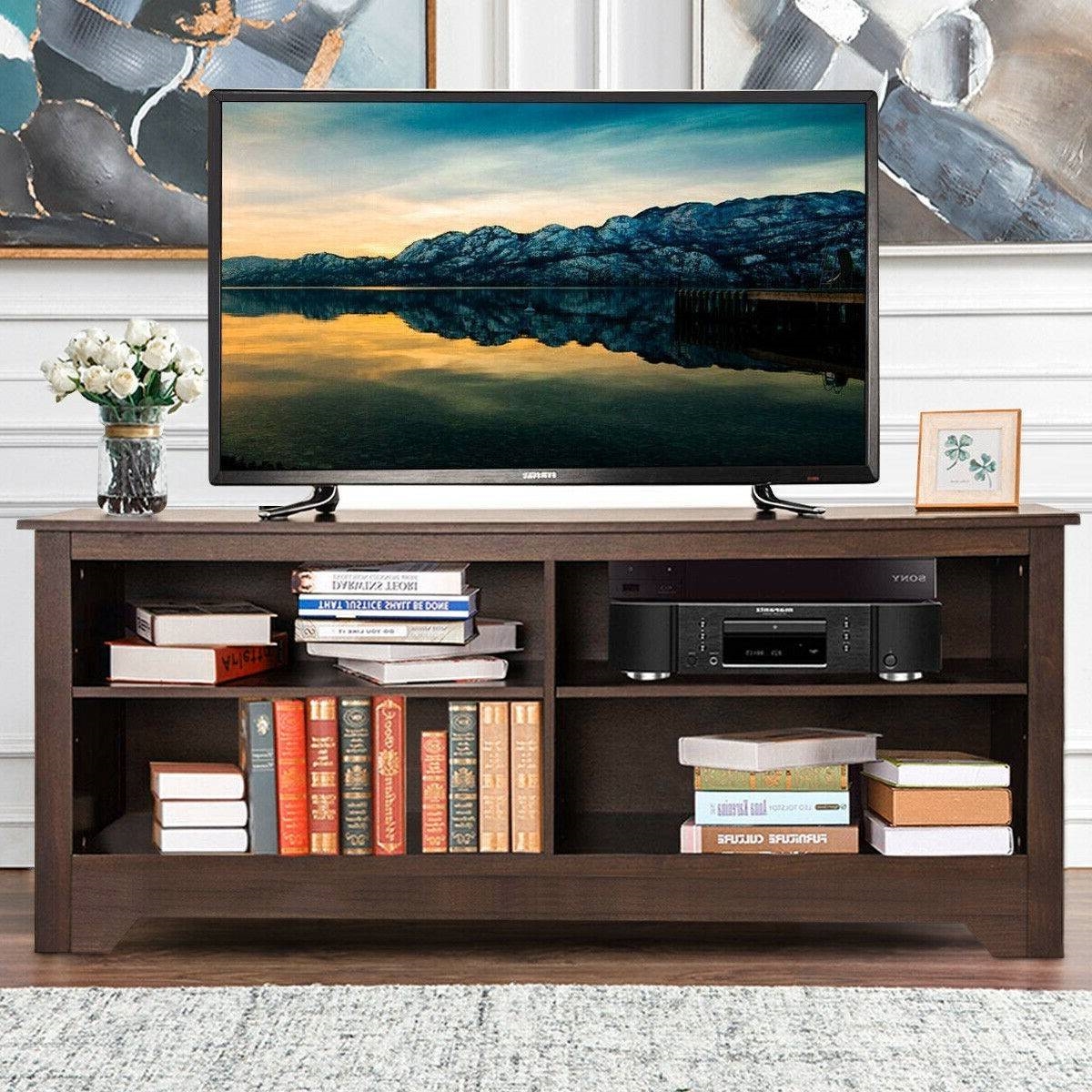 This Contemporary TV Stand for up to 60-inch TV in Espresso Finish brings a dramatic contemporary style to your home with its elegant finish. The top can support a TV up to 60 inches, and the adjustable shelves help you store necessary media or gaming devices. The TV stand is more than a TV stand, it is a piece of furniture for your home. With a clean edged top, rectangular legs, the distinctive TV stand creates a warm and charming atmosphere for your home or office. This TV stand is designed to blend into a variety of living and family room settings. With its casual contemporary style, this exquisite collection is a relaxed look that fits anywhere. Do you want this beautiful TV stand? Just buy it now!