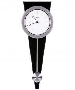 This Contemporary Wall Clock with Functional Pendulum Design would be a great addition to your home. A stylish clock that is sure to go with any contemporary styled room. The black finished wood contrasts beautifully with the silver bezel and pendulum. The crisp white dial features black bar hour markers and black hour and minute hands for an engaging minimalist impression. Includes one “AA” battery!