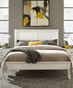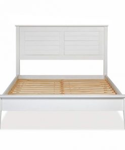 The Contemporary White Solid Pine Platform Bed in Queen Size bed blends contemporary and traditional styles that make it feel familiar, yet bold. Its louvered headboard creates a timeless coastal style. Made of 100% solid pine wood, this bed features a sturdy construction that can last for years.