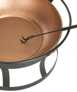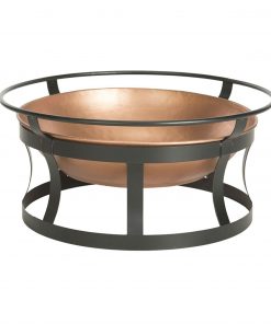 Gather Round. The wood-burning Copper Finish Fire Pit with Black Iron Stand Grate and Fire Poker invites guests to linger on the patio long into the night. Fire pit is crafted of steel with a copper finish that fits into a curved black iron stand. This transitional design brings modern flair to outdoor entertaining.