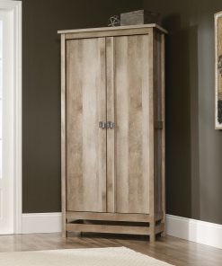 Bring earthy style to your bedroom with this Cottage Style Wardrobe Armoire Storage Cabinet in Light Oak Wood Finish. The Lintel Oak finish imitates a beachy, sun-bleached visage that looks amazing when paired with bright whites and fluffy down comforters. The two large doors with antique pewter door pulls open to reveal six adjustable shelves. Crafted from wood and finished with laminate veneers, it was crafted to stand the test of time.