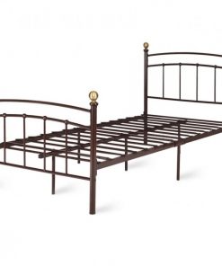 This Dark Brown Gold Tops Metal Platform Bed in Twin Size is a great addition to any kids, college dorm, or guest bedroom, This twin size platform bed frame stands 12 inch off the floor allowing for ample storage space underneath the bed. The metal frame with modern dark brown headboard, footboard and full-length guardrails provide safety and comfortable sleep environment