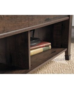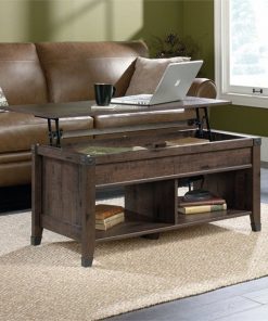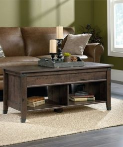Is your couch too comfy to leave, but you still have work to get done? Check out this Dark Brown Coffee Lift-Top Multi Purpose Coffee Table. The top lifts up and forward creating a multipurpose work surface so you can work, browse online, or eat dinner while relaxing on your couch. Beneath the top surface of this pop up coffee table is a hidden storage area that is ideal for storing items like blankets and your favorite books. The lower open shelf provides you with even more space to store and display things like organizing bins, board games, and knick-knacks. This storage coffee table is finished on all sides for versatile placement throughout your home.