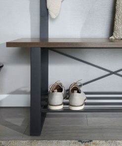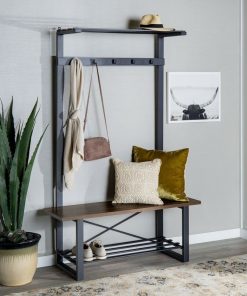 This Hall Tree has never looked so chic. Scarves, coats, and bags all find a home on the multiple hooks available. The lower shelf is perfect for shoes and the space overhead will accept your hats with gratitude. The contemporary color with a sturdy metal frame will surely complement your design aesthetic while providing a completed look in your home. Featuring an urban industrial style to add to your entryway, hallway, or mudroom. Creates added storage space to anywhere in your home with its compact and tall design. Ships ready-to-assemble with step-by-step instructions.