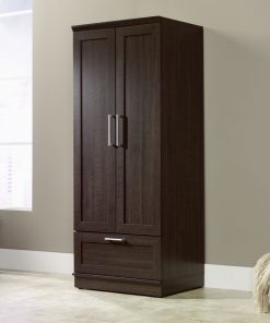 Add function throughout your home with this Dark Brown Wood Wardrobe Cabinet Armoire with Garment Rod that provides the right amount of style to fit any room and delivers the function to match. Each piece works as a stand alone, or in combination with other pieces to provide built-in look.