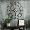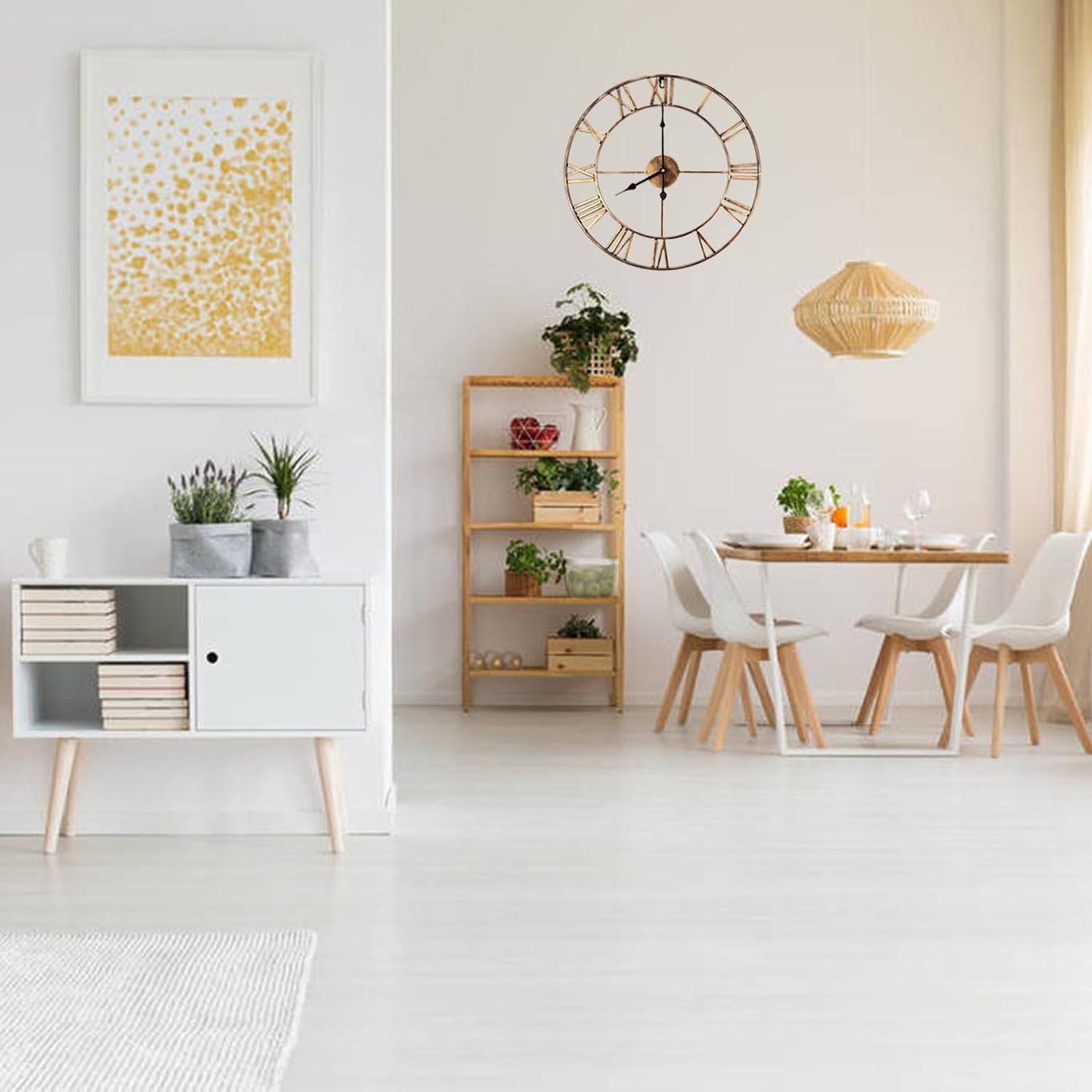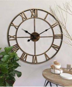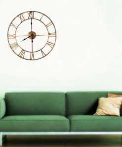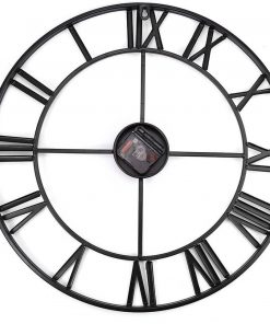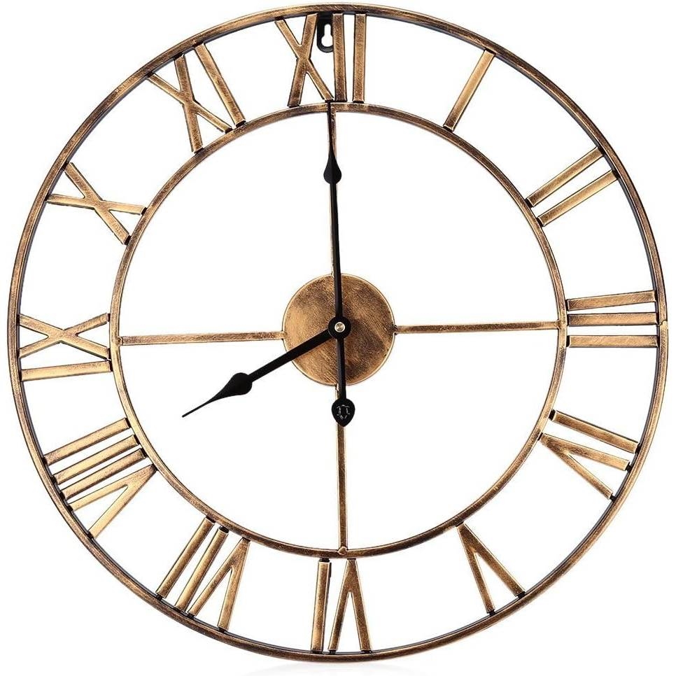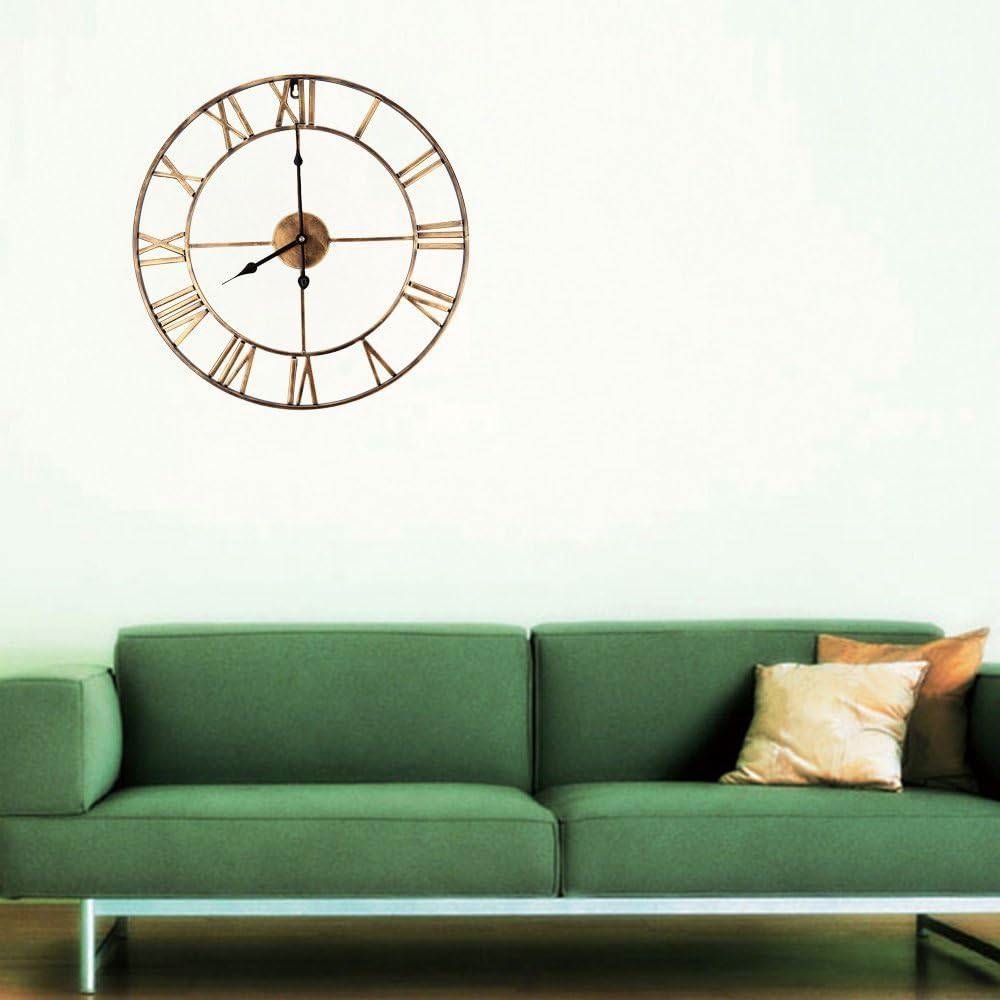 This Decorative 18.5-inch Roman Numerals Silent Non-Ticking Wall Clock in Gold is an oversized iron wall clock with European retro style and no frame surface. Enjoy a vintage display on the wall with a fashion pattern available, best decoration. Diameter: 18.5(47cm) Classic and elegant and looks great on the wall of the living room, bedroom, kitchen, hallway, office, study, cafe, hotel, restaurant etc. Handmade iron metal, classic industrial Roman Numerals, with hand painted vintage color. Famous Qualify Quartz Sweep Movement and no second design guarantees accurate time & absolutely silent environment. Recommended AA ordinary Carbon Zinc or Heavy Duty battery (NOT Included), excluding Alkaline battery.