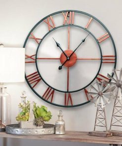 This Decorative 18.5-inch Roman Numerals Silent Non-Ticking Wall Clock in Red is an oversized iron wall clock with European retro style and no frame surface. Enjoy a vintage display on the wall with a fashion pattern available, best decoration. Diameter: 18.5(47cm) Classic and elegant and looks great on the wall of the living room, bedroom, kitchen, hallway, office, study, cafe, hotel, restaurant etc. Handmade iron metal, classic industrial Roman Numerals, with hand painted vintage color. Famous Qualify Quartz Sweep Movement and no second design guarantees accurate time & absolutely silent environment. Recommended AA ordinary Carbon Zinc or Heavy Duty battery (NOT Included), excluding Alkaline battery.