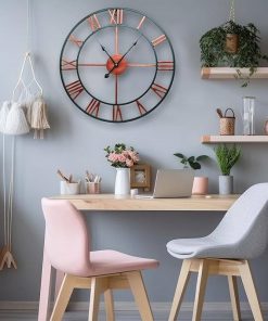- Decorative 18.5-inch Roman Numerals Silent Non-Ticking Wall Clock in Red