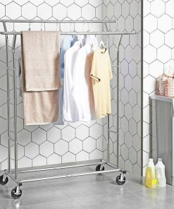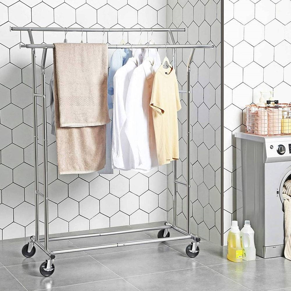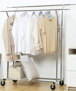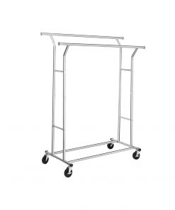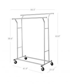 • Double Bar Heavy Duty Metal Garment Clothes Rack on Wheels – 250 lbs. Capacity