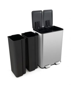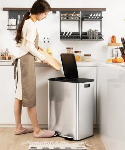 - Dual Barrels for Sorting: To hold all your trash, the garbage bin has 2 compartments to offer a great capacity of up to 16 gal. Meantime, its dual-barrel design creates separate spaces that allow you to classify your trash into recyclable & food waste.