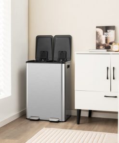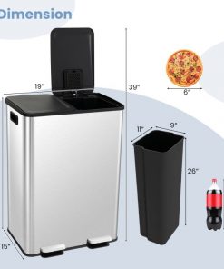 This Dual 8-Gallon Step Trash Can Recycle Bin Food Waste Kitchen Compost Container would be a great addition to your home. Double 8 gal/30 L barrel for easy waste sorting of recycled waste and kitchen garbage. Stainless steel frame is robust, rustproof, fingerprint resistant and easy to clean. Built with 3 layers, stainless steel layer, drawing wire layer and anti-fingerprint layer. Thoughtful stay-open design allows you to deal with long-time chores. Comes with smooth opening and slow closing to lower noises while using. Deodorizer compartment to store deodorizers to avoid weird smells. Facilitate multi-scene use, like office, kitchen, dining room, etc. Fitted with the durable stainless steel pedal for effortless controlling. Anti-slip foot pads will keep stable and avoid scratches. Can be moved anywhere for wide use, thanks to side handles. Needs no installation, can be used as long as you unpack it.