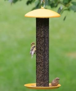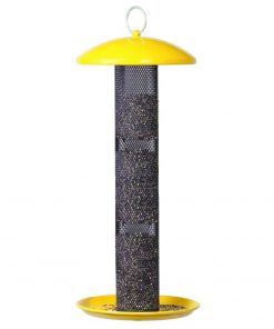 Make your backyard or garden the new hotspot for every thistle-eating bird in town with this Durable Metal Mesh Tube Hanging Bird Feeder with Yellow Top and Perch. This charming 1.5 lb capacity feeder is a perfect combination of durable and functional. The wire mesh, all-metal construction resists damage, while also being low-maintenance and easy to clean. In addition, Evenseed technology also allows for an even distribution of seed throughout the feeder as it empties.