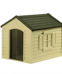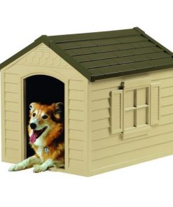 This Durable Outdoor Plastic Dog House in Taupe and Bronze – For Dogs up to 70 pounds is easy snap together assemble, no tools required.