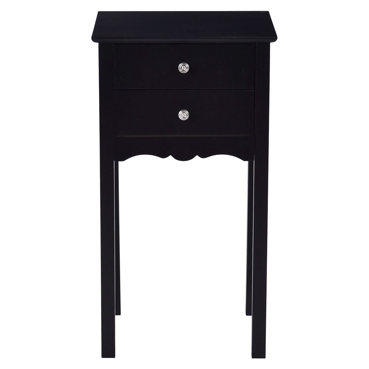 Elegant 2-Drawer End Table Nightstand Side Table in Black Wood Finish